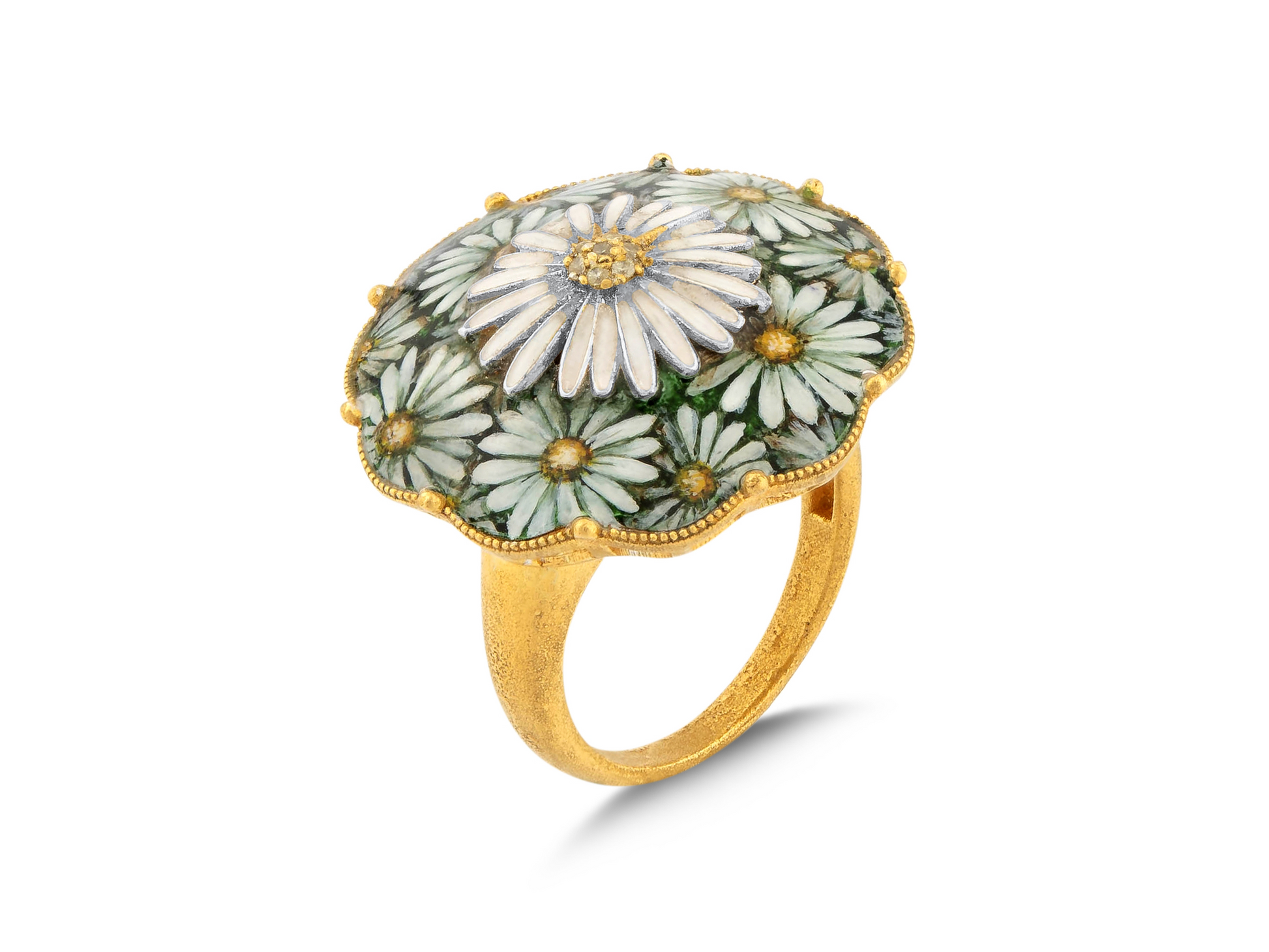 Our dainty Ophelia Artisanal Ring, adorned with white sapphire stones, is a captivating blend of florals and luxury. Set in 925 sterling silver and 24k gold, this statement piece celebrates the intricate beauty of the nature that surrounds us.